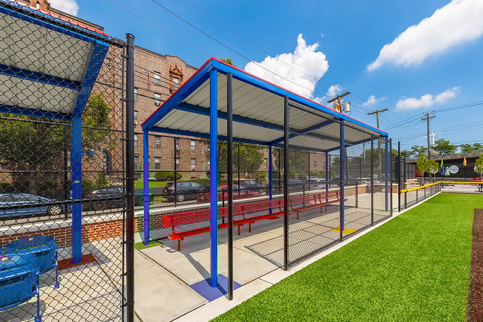 Our all-steel Dugout Shelter is a simple design but has added architectural appeal with its sloped roof. This rectangle shelter can cover walkways or bus stops but is specifically designed to cover dugouts. The versatility of this pavilion makes it a great choice for schools, sport complexes, and parks. What's more, its durability makes it a great choice for customers in areas that receive heavy snow.